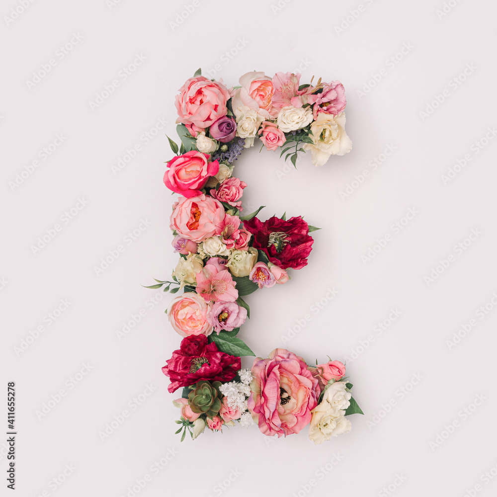Letter E Made Of Real Natural Flowers And Leaves Flower Font Concept Unique Collection Of Letters And Numbers Spring Summer And Valentines Creative Idea Stock Photo Adobe Stock